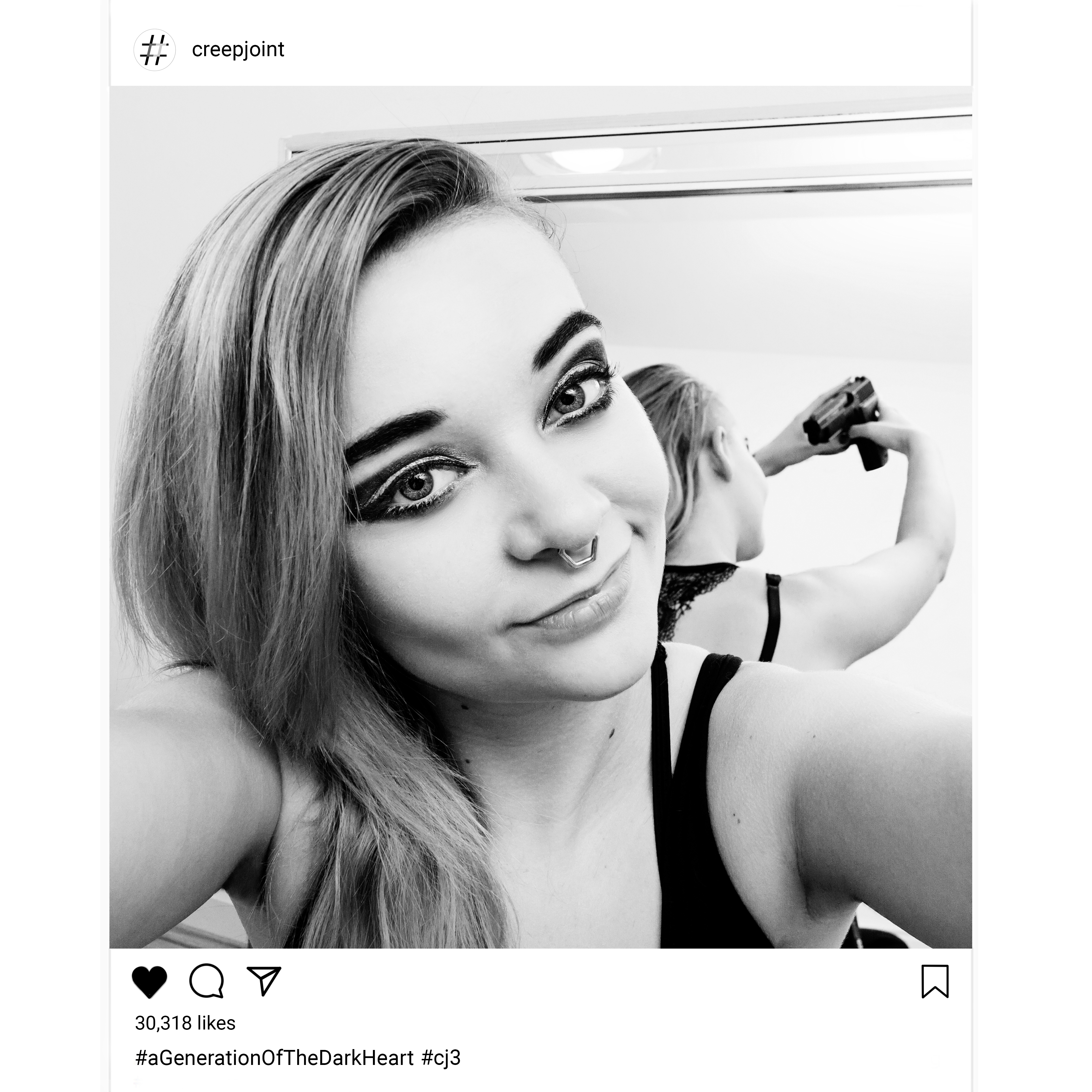 Wait for the moment to face the lens only to fake a smile and open wide and click. Flick the triple X-rated switch. Mix it all up. Pan and fade. A fad. And mud that sticks. You're abused by somebody. Used by somebody. Too bad. Tonight somebody is watching you using your body to please somebody. Too bad. Soon it will come back to bite you. Take your time. Take a pic. Take a trip right off the edge of it. And don't forget to pack your selfie stick. Quick, gutter dog, write it real quick. These slick obits we fixate upon and switch and mix for kicks. Frostbitten by the filter. Waiting for something new. Teeth bleach and bone-white. Winner. Don't deviate at all. Don't make a difference. Say what you will. Say what you like. Don't like the blood? Don't watch the fight. You've got to grin like the gap between your thighs. Oh, what's the matter? Diet tips? Semantics? Peroxide? Turmoil tuned into Project 2x2. I'm #false! #I'm fake! #I'm fucking great! #I sucked a dick! #I bled! #You watched me sick! #I'm still not fucking famous!